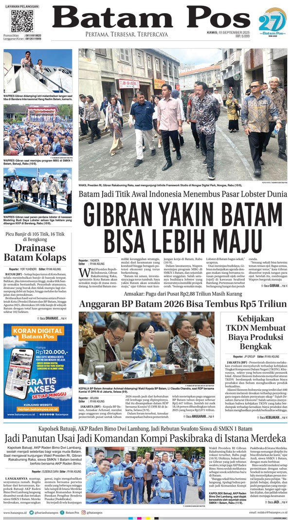 Silakan berlangganan untuk bisa membaca keseluruhan berita di Harian Batam Pos. ﹢ Berlangganan Baca Juga WhatsAppTelegram 11 September 2025 11 September 2025 Buka konten iniDengan mendaftarkan diri Anda di Harian Batam Pos, Anda akan mendapatkan akses penuh ke seluruh konten.SubscribeKami tidak akan mengirimkan email yang tidak berkaitan dengan akun Anda.Saya setuju untuk memperoses data saya sesuai dengan Aturan Layanan yang disediakan.