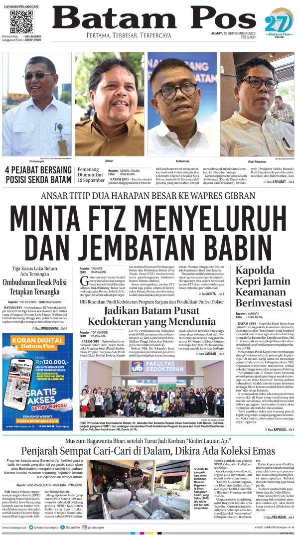 Silakan berlangganan untuk bisa membaca keseluruhan berita di Harian Batam Pos. ﹢ Berlangganan Baca Juga 14 Februari 2026 14 Februari 2026 WhatsAppTelegram 12 September 2025 12 September 2025 Buka konten iniDengan mendaftarkan diri Anda di Harian Batam Pos, Anda akan mendapatkan akses penuh ke seluruh konten.SubscribeKami tidak akan mengirimkan email yang tidak berkaitan dengan akun Anda.Saya setuju untuk memperoses data saya sesuai dengan Aturan Layanan yang disediakan.