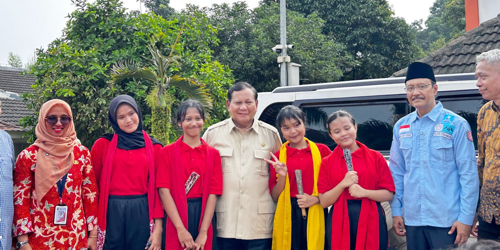 Saat memasuki salah satu kelas, Prabowo sempat terdiam menyaksikan anak-anak bernyanyi dan membaca puisi. Ia lalu mendekati salah seorang siswa untuk membenarkan posisi kabaretnya, sembari berpesan agar rajin belajar.