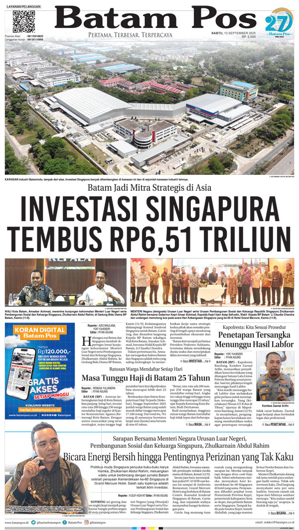 Silakan berlangganan untuk bisa membaca keseluruhan berita di Harian Batam Pos. ﹢ Berlangganan Baca Juga 14 Februari 2026 14 Februari 2026 WhatsAppTelegram 13 September 2025 13 September 2025 Buka konten iniDengan mendaftarkan diri Anda di Harian Batam Pos, Anda akan mendapatkan akses penuh ke seluruh konten.SubscribeKami tidak akan mengirimkan email yang tidak berkaitan dengan akun Anda.Saya setuju untuk memperoses data saya sesuai dengan Aturan Layanan yang disediakan.