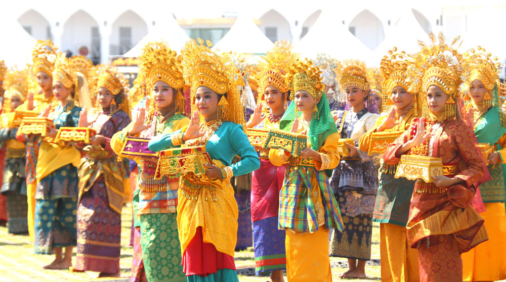 Pelajar SMP se-Kota Batam membawakan tari persembahan sekapur sirih pada acara Batam Bertanjak dalam rangka Hari Jadi ke-25 LAM Batam dan silaturahmi akbar ormas serta paguyuban se-Kota Batam di Dataran Engku Putri, Batam Center, Minggu (14/9). Foto. Cecep Mulyana/Batam Pos