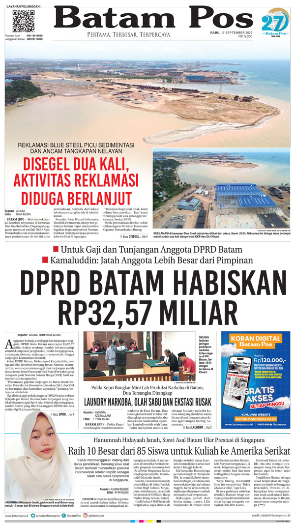 Silakan berlangganan untuk bisa membaca keseluruhan berita di Harian Batam Pos. ﹢ Berlangganan Baca Juga 14 Februari 2026 14 Februari 2026 WhatsAppTelegram 17 September 2025 17 September 2025 Buka konten iniDengan mendaftarkan diri Anda di Harian Batam Pos, Anda akan mendapatkan akses penuh ke seluruh konten.SubscribeKami tidak akan mengirimkan email yang tidak berkaitan dengan akun Anda.Saya setuju untuk memperoses data saya sesuai dengan Aturan Layanan yang disediakan.