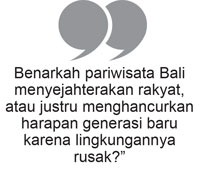 Pertanyaan-pertanyaan itu akan terus bertambah jika dikaitkan dengan ketidakharmonisan alam Bali saat ini.