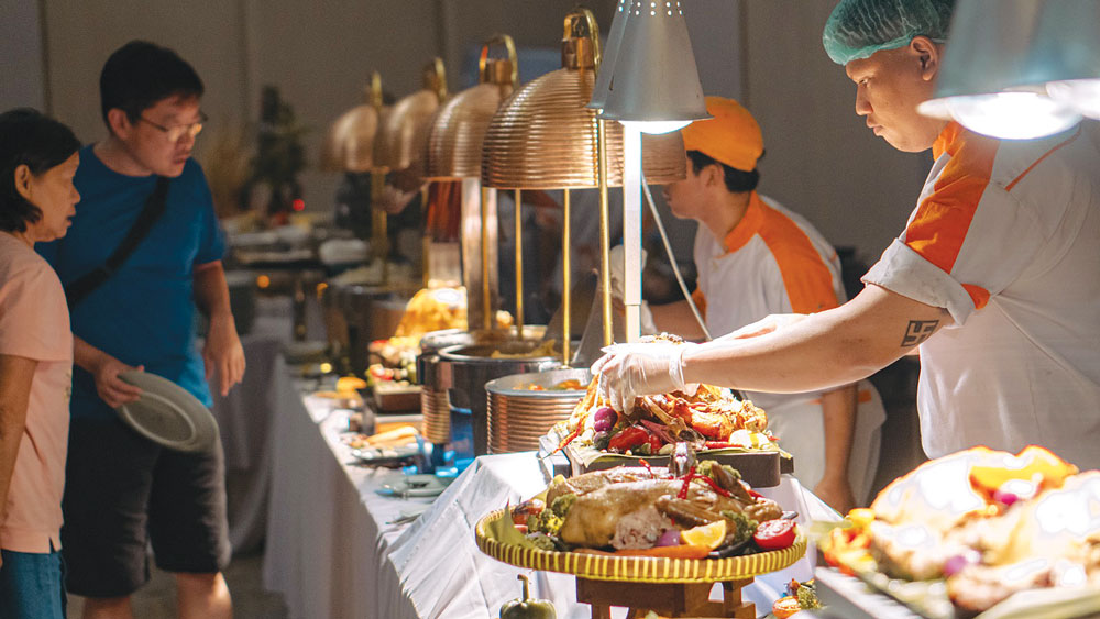Pengunjung dapat menikmati sajian mulai dari Caribbean Salad hingga Zucchini Tuna Mousseline. Menu utama di antaranya Bourbon-Glazed Turkey, 22-Hour Slow-Roasted Bottom Beef, hingga Beef Wellington. Ada juga carving station berisi Roasted Turkey dan Smoked Chicken.