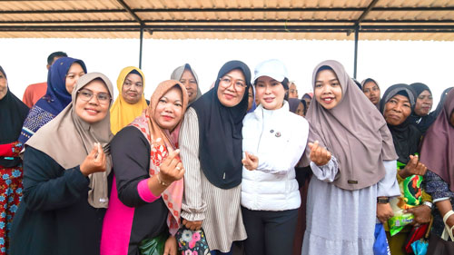 Suasana semakin hangat ketika Li Claudia menyempatkan diri membeli dagangan pelaku UMKM yang menggelar lapak di lokasi kegiatan. Ia tidak hanya membeli, tapi juga membagikan hadiah kepada warga yang hadir.