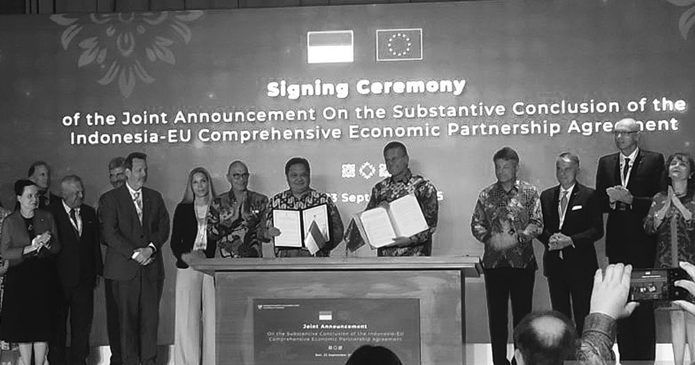 Penandatanganan itu dilaksanakan langsung bersama dengan Komisioner Perdagangan dan Keamanan Ekonomi Komisi Eropa, Maros Sefcovic, dan disaksikan langsung 21 duta besar negara-negara Uni Eropa.