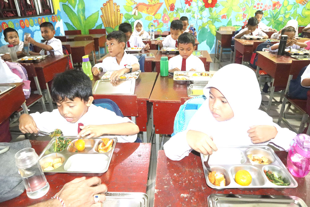 “Sejak pagi sampai sore, semua siswa sehat. Tidak ada laporan keracunan. Menu yang disajikan juga terjaga kualitasnya,” katanya.