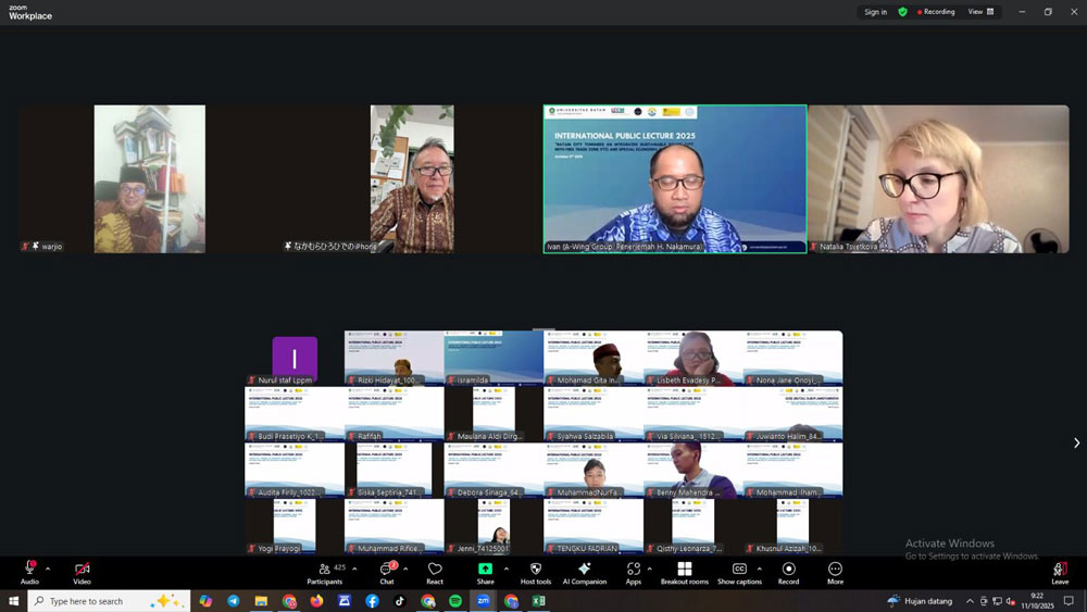 Kegiatan yang digelar secara daring melalui Zoom Meeting ini menghadirkan enam narasumber dari empat negara yakni Rusia, Jepang, Malaysia, dan Indonesia, yang membahas arah transformasi Batam sebagai kota cerdas (smart city) sekaligus kawasan ekonomi strategis di tingkat regional dan global.