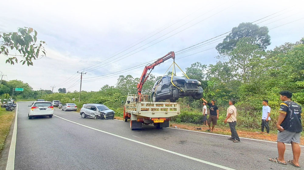 Kecelakaan itu melibatkan Toyota Rush berwarna hitam dan Datsun BP 1406 YJ, hingga menyebabkan kerusakan parah pada kedua kendaraan.