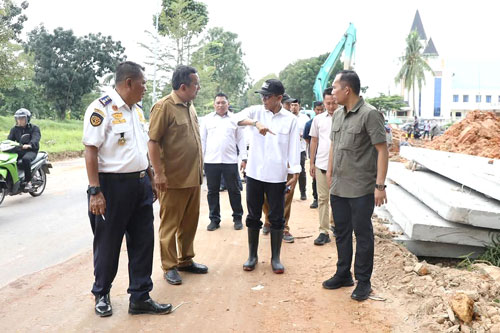 WALI Kota Batam, Amsakar Achmad, meninjau langsung pengerjaan box culvert dan peningkatan jalan di Simpang Helm, Jalan Raja Isa, Batam Center, Senin (13/10).