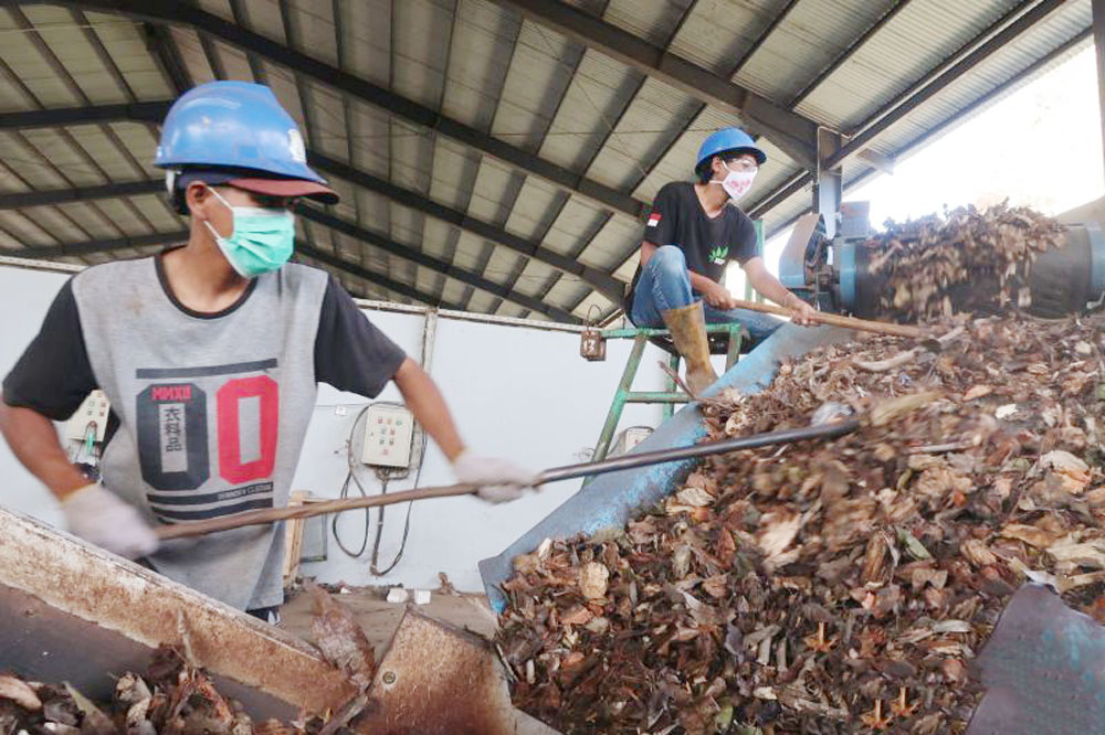 Hasil biomassa setiap hari sebanyak 3 ton dari aktivitas mengolah 20 ton sampah taman. (Sugiharto Purnama)