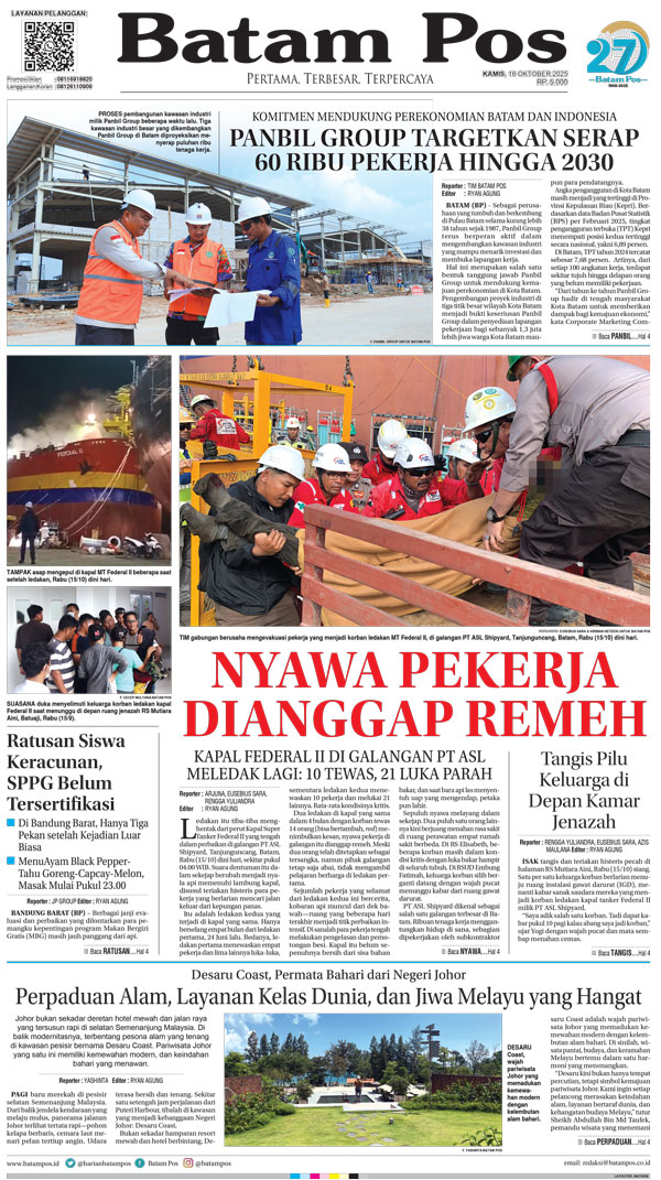 Silakan berlangganan untuk bisa membaca keseluruhan berita di Harian Batam Pos. ﹢ Berlangganan Baca Juga 14 Februari 2026 14 Februari 2026 WhatsAppTelegram 16 Oktober 2025 16 Oktober 2025 Buka konten iniDengan mendaftarkan diri Anda di Harian Batam Pos, Anda akan mendapatkan akses penuh ke seluruh konten.SubscribeKami tidak akan mengirimkan email yang tidak berkaitan dengan akun Anda.Saya setuju untuk memperoses data saya sesuai dengan Aturan Layanan yang disediakan.