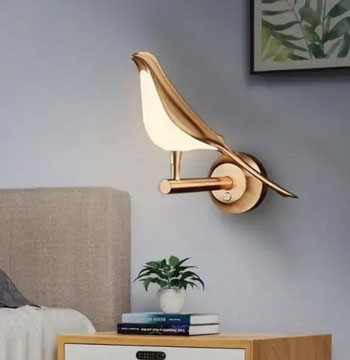 Lihat deh lampu hias kamar tidur tempel dinding yang bentuknya terinspirasi dari bulu angsa atau daun yang memanjang ini. Desainnya sangat artistik dan dramatis.