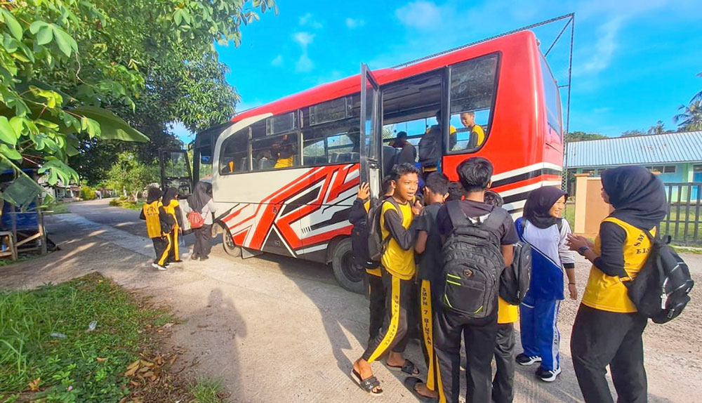 PAGI itu, matahari belum terlalu tinggi, tapi suara tawa dan obrolan riang sudah terdengar di halaman Desa Pengujan, Kecamatan Teluk Bintan. Para siswa SMP Negeri 7 Bintan menunggu bus sekolah dengan wajah berbinar. Tidak seperti dulu, mereka tidak lagi khawatir tertinggal atau harus menumpang kendaraan warga.