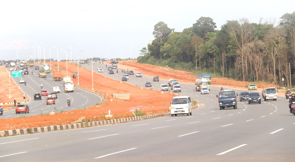 Pelebaran Jalan Sudirman dari dua lajur menjadi lima lajur di setiap arah membuat arus lalu lintas semakin lancar tanpa hambatan berarti, Jumat (17/10). Meski begitu, masih ditemukan pelanggaran aturan berlalu lintas. Sejumlah kendaraan berat dan sepeda motor tidak menempati lajur kiri sebagaimana mestinya, sehingga berpotensi mengganggu kelancaran dan keselamatan pengguna jalan lain. Foto: Cecep Mulyana/Batam Pos