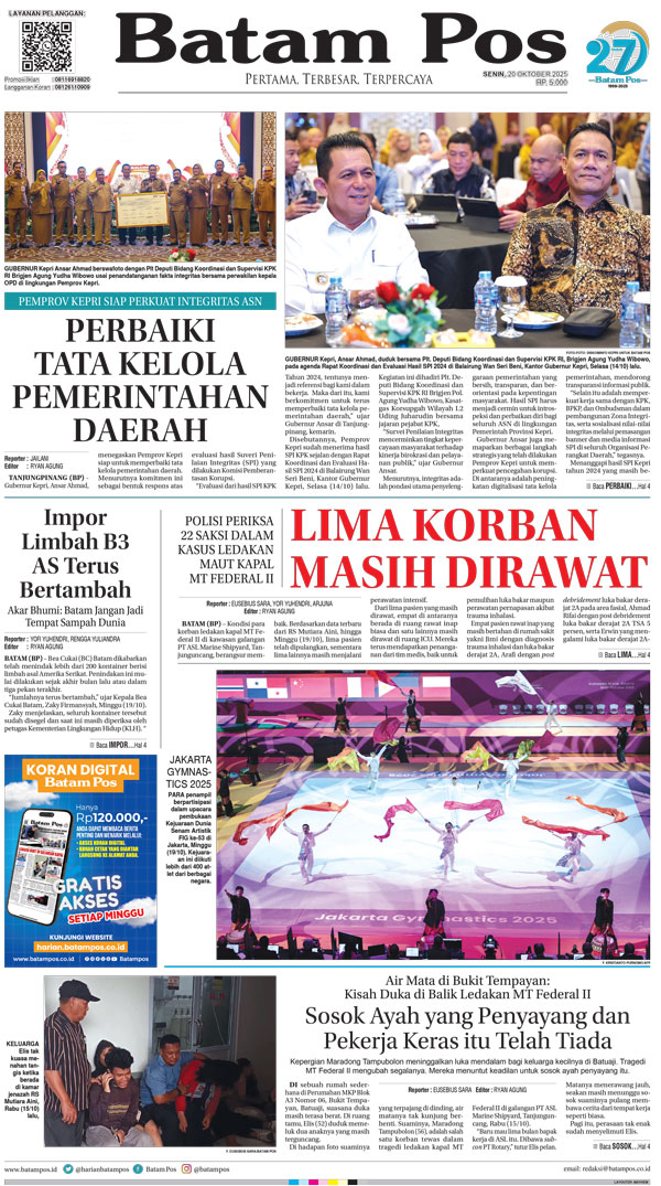 Silakan berlangganan untuk bisa membaca keseluruhan berita di Harian Batam Pos. ﹢ Berlangganan Baca Juga 14 Februari 2026 14 Februari 2026 WhatsAppTelegram 20 Oktober 2025 20 Oktober 2025 Buka konten iniDengan mendaftarkan diri Anda di Harian Batam Pos, Anda akan mendapatkan akses penuh ke seluruh konten.SubscribeKami tidak akan mengirimkan email yang tidak berkaitan dengan akun Anda.Saya setuju untuk memperoses data saya sesuai dengan Aturan Layanan yang disediakan.