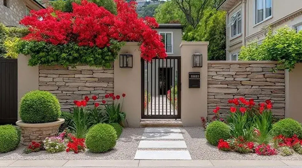 Tampilannya semakin elegan saja dengan tanaman bunga yang rimbun. Psst, pohon dengan bunga rimbun ini tidak hanya meningkatkan nilai estetika. Tapi juga untuk mempersulit orang yang mau memanjat pagar. (***)