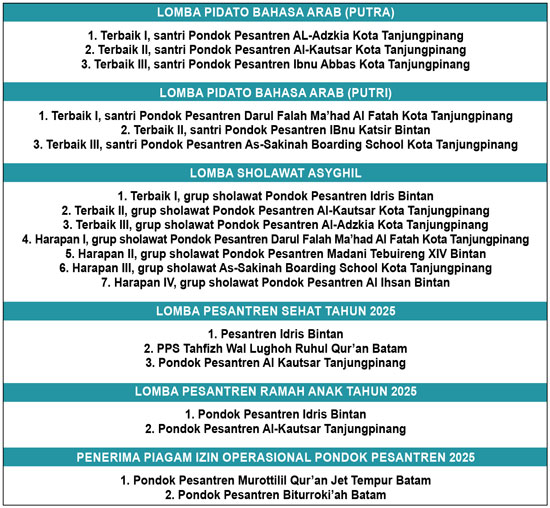 Pada kesempatan itu, Gubernur Ansar juga berpesan kepada seluruh santri di tanah air untuk menjadi santri yang berilmu, berakhlak, dan berdaya. ”Rawatlah tradisi pesantren, tetapi juga peluklah inovasi zaman. Bawalah semangat pesantren ke ruang publik, ke dunia kerja, ke ranah internasional. Tunjukkan bahwa santri mampu menjadi bagian dari solusi, bukan sekadar penonton,” imbuhnya.