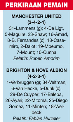 Malam nanti, Amorim akan memburunya ketika United menghadapi Brighton & Hove Albion dalam matchweek kesembilan di Old Trafford, Manchester (siaran langsung SCTV/Champions TV 5/Vidio pukul 23.30 WIB).