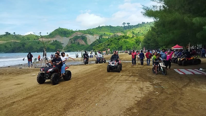 Jangan lupa abadikan momen indah Anda di pantai ini karena latar belakang alamnya sangat instagramable.