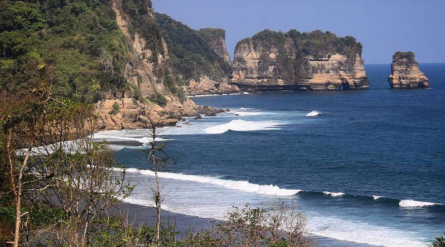 Pantai Kedung Tumpang terkenal dengan formasi batu karangnya yang unik dan dramatis.