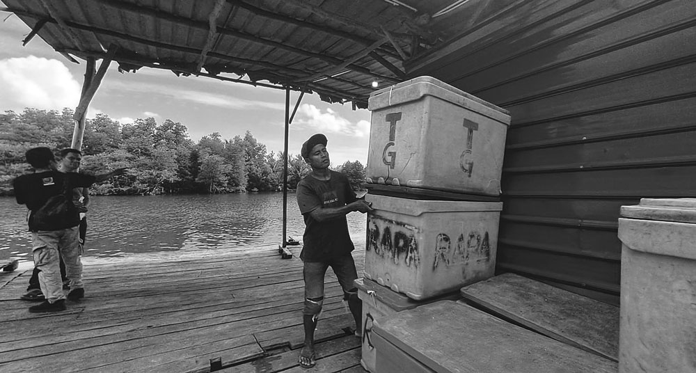 Pantauan di lapangan, akses menuju pelabuhan hanya berupa jalan tanah. Terlihat seorang pekerja tengah menyusun deretan fiber box yang disebut-sebut digunakan untuk penyimpanan ikan. Dua plang juga terpampang di area tersebut. Satu di antaranya bertuliskan Terminal Kapal Pelayaran Rakyat berdasarkan SK Gubernur Nomor 1168 Tahun 2024. Sementara satu plang lain memuat identitas Dinas Perhubungan Provinsi Kepulauan Riau, Jalan RH Fisabilillah Nomor 9 dan 10, Tanjungpinang.