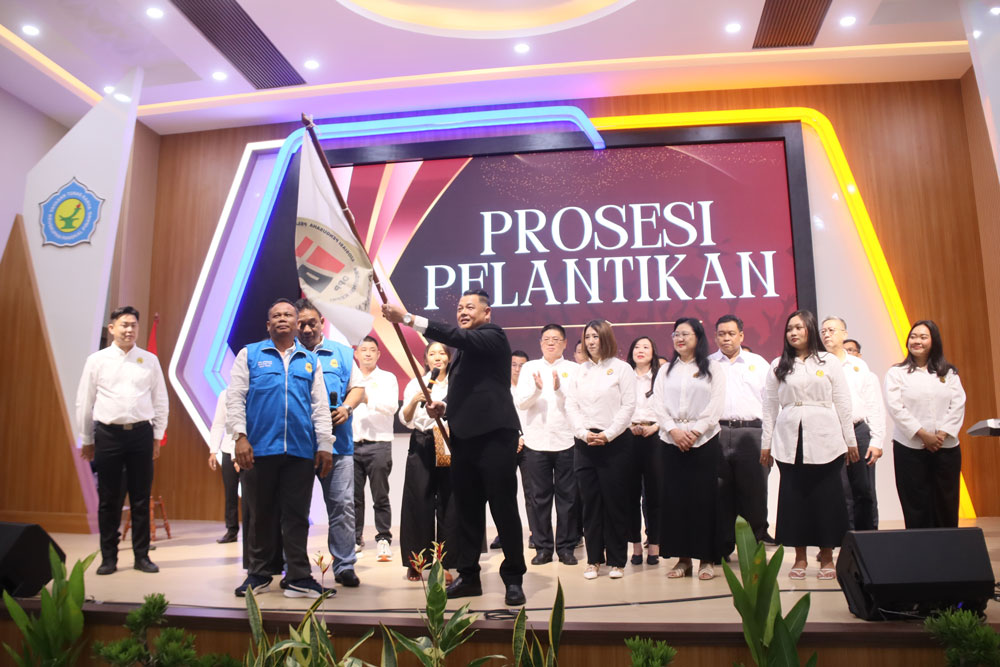 Ketua Umum DPP APPEKNAS, Fandy Iood, melantik Ketua APPEKNAS Kepri, Gilbert Hoo, dan pengurus lainnya di Ballroom Yos Sudarso, Selasa (28/10). F. Cecep Mulyana/Batam Pos