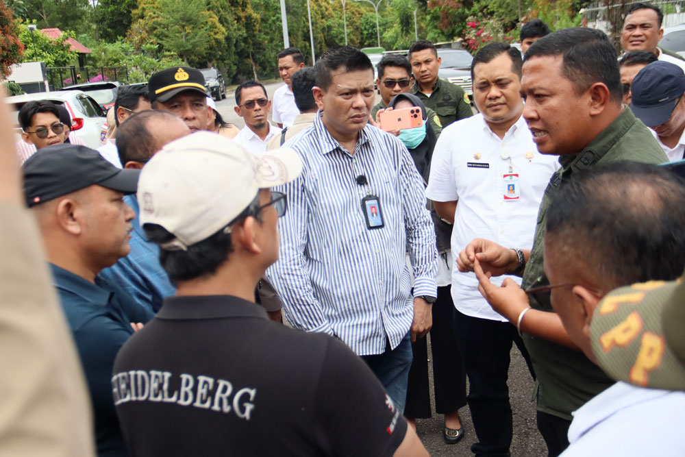 Kejari Batam bersama Camat Batam Kota dan instansi terkait berdialog de­ngan warga terkait penolakan lokasi pembangunan Kantor Lurah yang berada di Peruamahan Bukit Raya Sukajadi, Rabu (29/10). F. Cecep Mulyana/Batam Pos