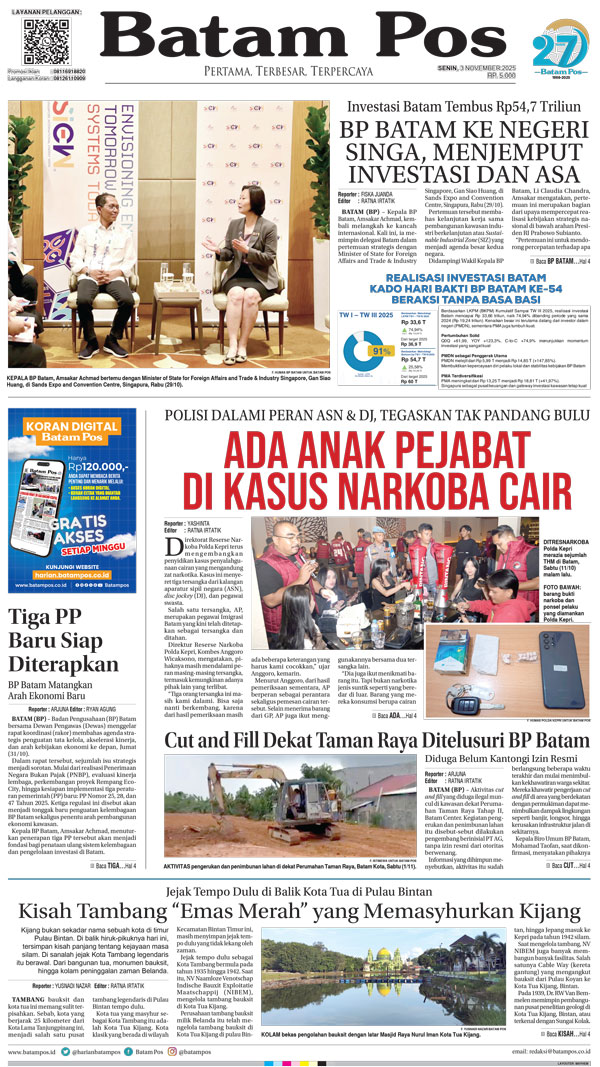 Silakan berlangganan untuk bisa membaca keseluruhan berita di Harian Batam Pos. ﹢ Berlangganan Baca Juga 14 Februari 2026 14 Februari 2026 WhatsAppTelegram 3 November 2025 3 November 2025 Buka konten iniDengan mendaftarkan diri Anda di Harian Batam Pos, Anda akan mendapatkan akses penuh ke seluruh konten.SubscribeKami tidak akan mengirimkan email yang tidak berkaitan dengan akun Anda.Saya setuju untuk memperoses data saya sesuai dengan Aturan Layanan yang disediakan.