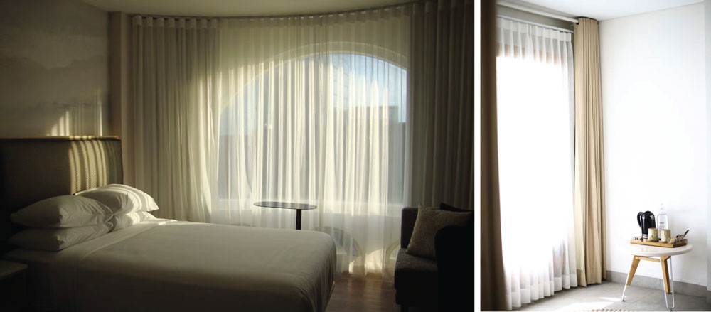 Untuk ruang yang butuh cahaya alami, pilih gorden sheer. Tapi jika ingin ruangan gelap total saat malam hari, pilih blackout.