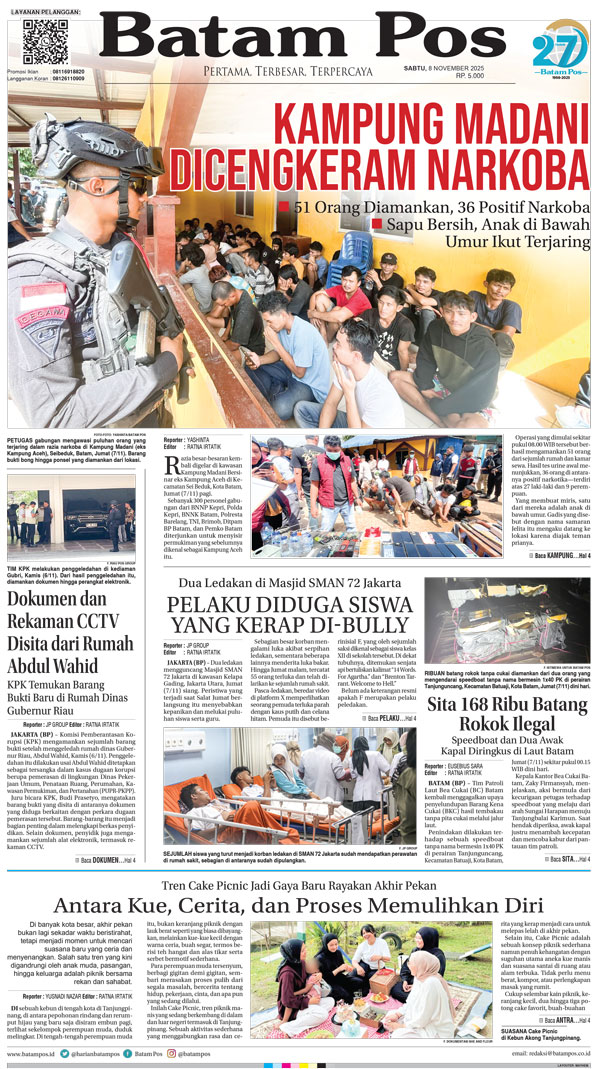 Silakan berlangganan untuk bisa membaca keseluruhan berita di Harian Batam Pos. ﹢ Berlangganan Baca Juga 14 Februari 2026 14 Februari 2026 WhatsAppTelegram 8 November 2025 8 November 2025 Buka konten iniDengan mendaftarkan diri Anda di Harian Batam Pos, Anda akan mendapatkan akses penuh ke seluruh konten.SubscribeKami tidak akan mengirimkan email yang tidak berkaitan dengan akun Anda.Saya setuju untuk memperoses data saya sesuai dengan Aturan Layanan yang disediakan.