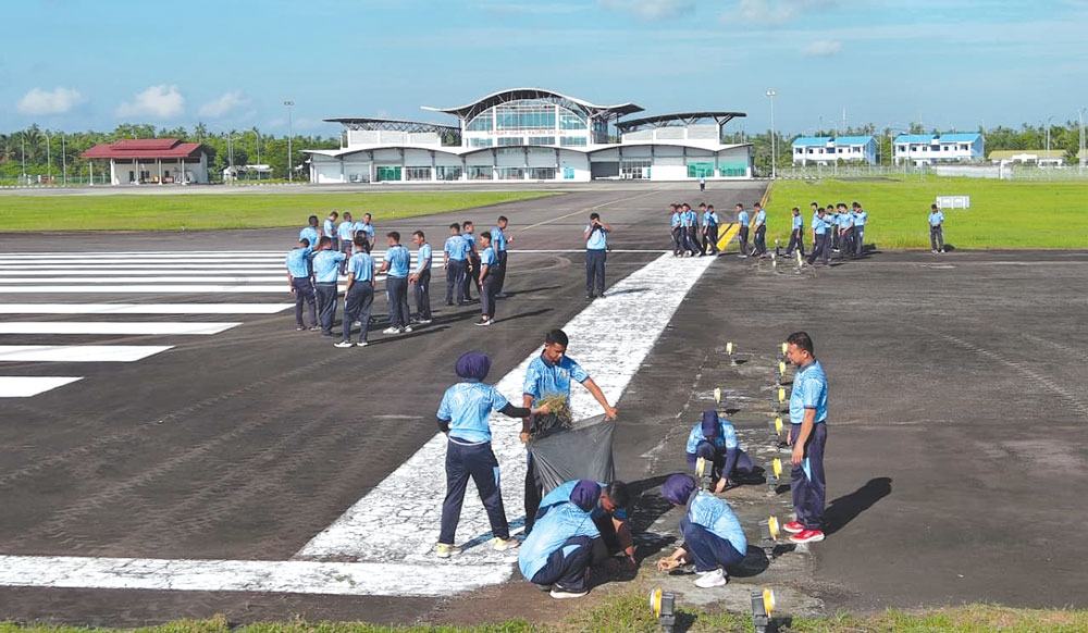 Prajurit Lanud RSA Bersihkan Landasan Pacu