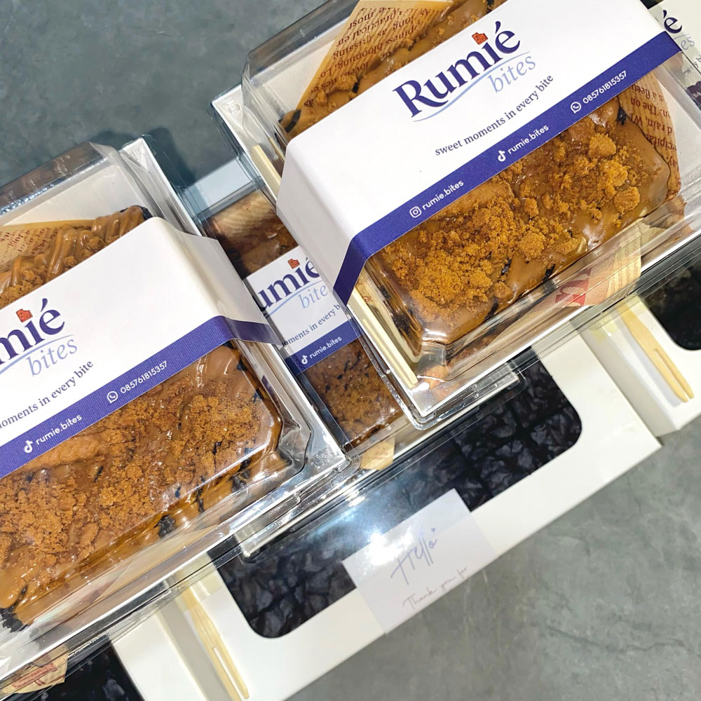 Saat ini, Rumie Bites menawarkan fudgy brownies tiga varian: original, salted caramel, dan lotus biscoff, tersedia dalam ukuran small (Rp23.000–32.000) dan large (Rp46.000–60.000). Ketiganya diminati hampir sama banyaknya. Sistem jualannya pre-order (PO) melalui Instagram dan TikTok @rumie.bites.