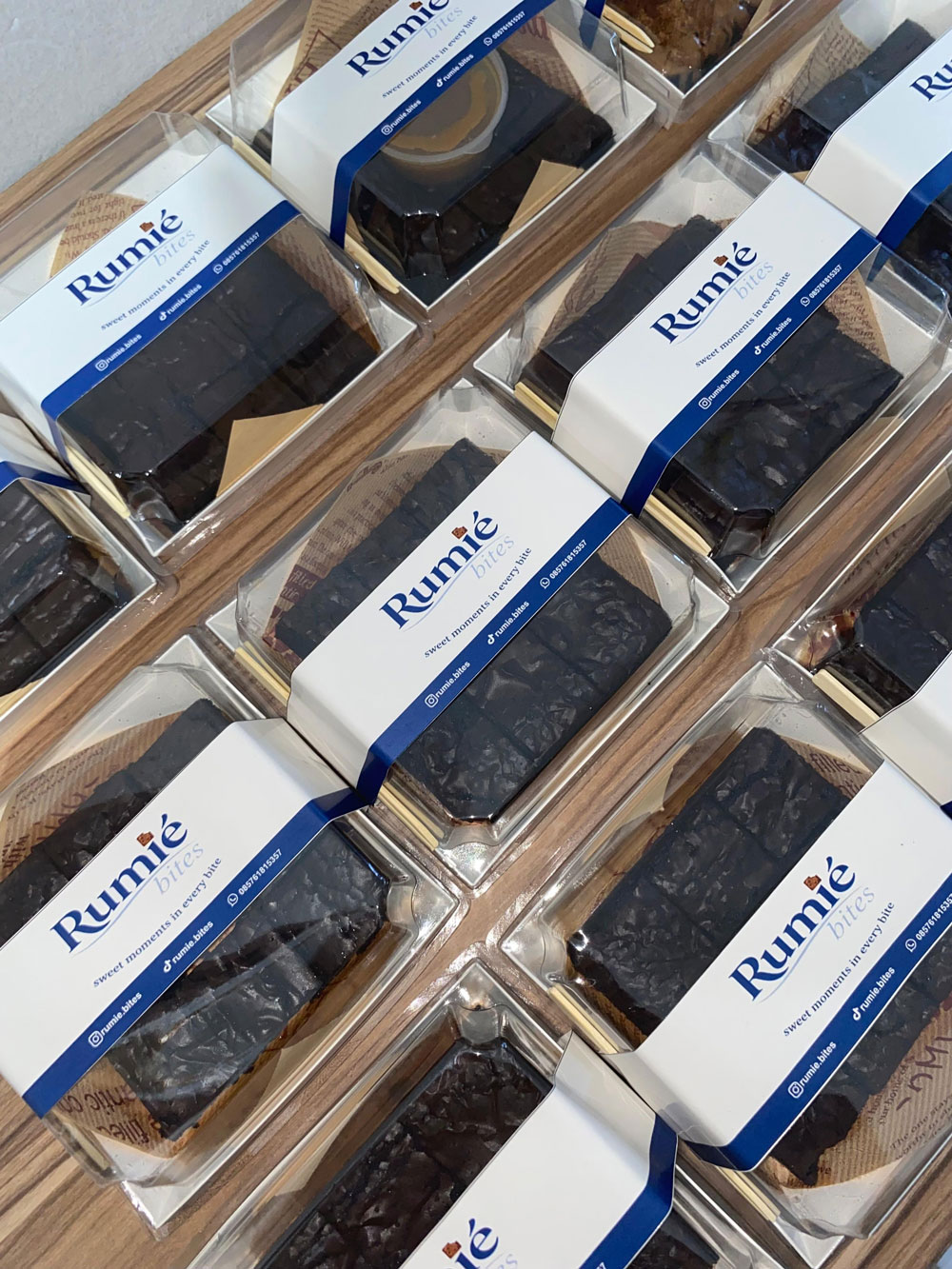Saat ini, Rumie Bites menawarkan fudgy brownies tiga varian: original, salted caramel, dan lotus biscoff, tersedia dalam ukuran small (Rp23.000–32.000) dan large (Rp46.000–60.000). Ketiganya diminati hampir sama banyaknya. Sistem jualannya pre-order (PO) melalui Instagram dan TikTok @rumie.bites.