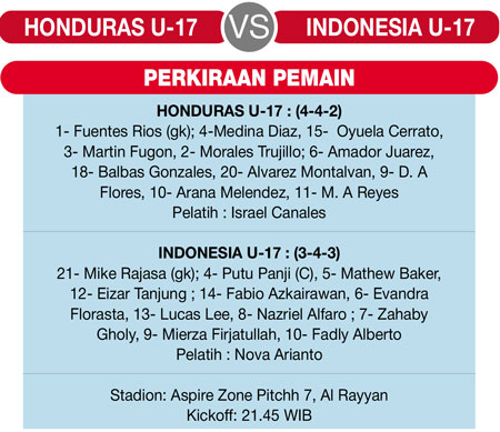 Karena itu, laga ini menjadi penentu bagi kedua kesebelasan untuk memelihara peluang melaju ke fase berikutnya. “Peluang tetap ada. Tapi kita tidak boleh meremehkan Honduras,” ujar pelatih Indonesia U-17, Nova Arianto.