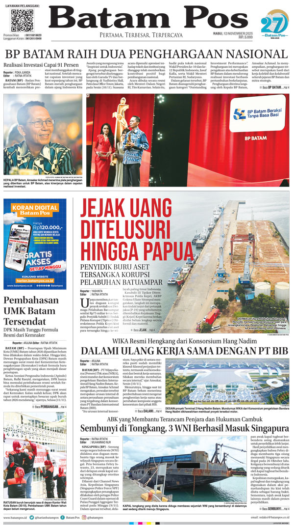 Silakan berlangganan untuk bisa membaca keseluruhan berita di Harian Batam Pos. ﹢ Berlangganan Baca Juga 14 Februari 2026 14 Februari 2026 WhatsAppTelegram 12 November 2025 12 November 2025 Buka konten iniDengan mendaftarkan diri Anda di Harian Batam Pos, Anda akan mendapatkan akses penuh ke seluruh konten.SubscribeKami tidak akan mengirimkan email yang tidak berkaitan dengan akun Anda.Saya setuju untuk memperoses data saya sesuai dengan Aturan Layanan yang disediakan.