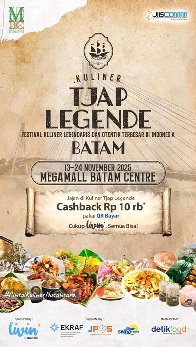 Kehadiran program ini kini menyapa masyarakat di Mega Mall Batam Centre, pusat perbelanjaan ikonik yang terhubung langsung dengan Pelabuhan Internasional Batam Centre. Dengan jangkauan pengunjung lokal hingga wisatawan mancanegara, festival kuliner ini bukan hanya menawarkan pengalaman rasa, tetapi juga memperkuat peran Batam sebagai gerbang budaya dan kuliner Indonesia. (*)