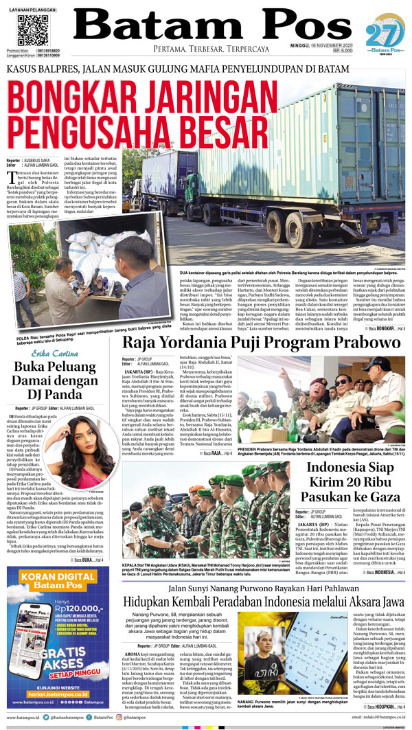 Silakan berlangganan untuk bisa membaca keseluruhan berita di Harian Batam Pos. ï¹¢ Berlangganan Baca Juga 25 Januari 2026 25 Januari 2026 WhatsAppTelegram 16 November 2025 16 November 2025