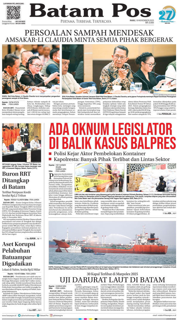 Silakan berlangganan untuk bisa membaca keseluruhan berita di Harian Batam Pos. ï¹¢ Berlangganan Baca Juga 16 Februari 2026 16 Februari 2026 WhatsAppTelegram 19 November 2025 19 November 2025 Buka konten iniDengan mendaftarkan diri Anda di Harian Batam Pos, Anda akan mendapatkan akses penuh ke seluruh konten.SubscribeKami tidak akan mengirimkan email yang tidak berkaitan dengan akun Anda.Saya setuju untuk memperoses data saya sesuai dengan Aturan Layanan yang disediakan.