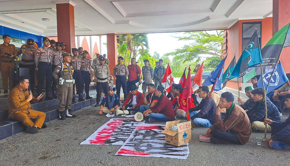 BINTAN (BP) – Puluhan mahasiswa mengatasnamakan Aliansi Cipayung Plus Tanjungpinang Bintan melakukan aksi di kantor Bupati Bintan, Bintan Buyu, Selasa (18/11).