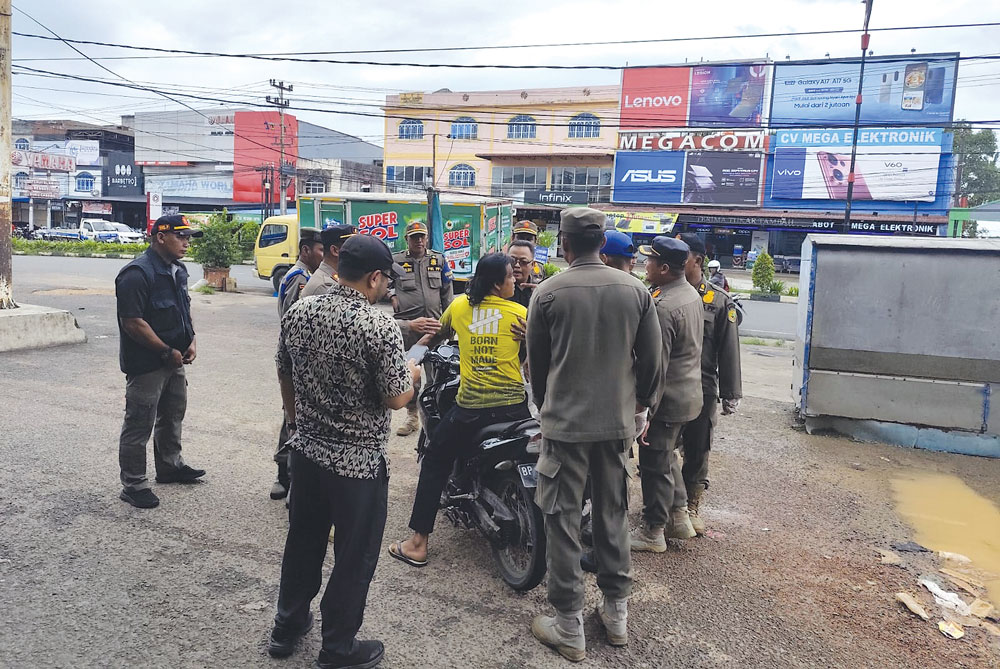 TANJUNGPINANG (BP) – Penertiban gerobak pedagang di sepanjang Jalan DI Panjaitan, Batu 10, Tanjungpinang, Kamis (20/11), sempat diwarnai percekcokan antara petugas Satpol PP dan seorang pengendara sepeda motor.