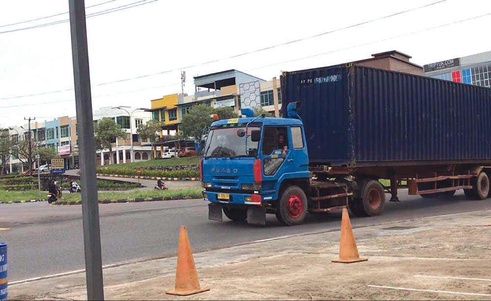 Truk-truk kontainer kerap melintas di jalanan yang berukuran kecil, seperti di Jalan Raja Haji Fisabilillah (RHF). Tidak jarang, truk tersebut melintas saat jam-jam padat, seperti pukul 16.00 WIB.