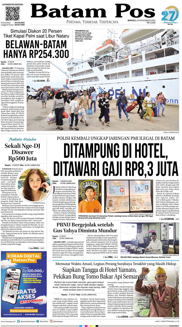 Silakan berlangganan untuk bisa membaca keseluruhan berita di Harian Batam Pos. ﹢ Berlangganan Baca Juga 1 April 2026 1 April 2026 WhatsAppTelegram 23 November 2025 23 November 2025