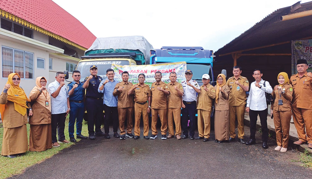 LINGGA (BP) – Sebanyak 24 ton cocopeat blok dan cocopeat curah produksi Sentra IKM Kelapa Kabupaten Lingga diberangkatkan ke Batam untuk kemudian diekspor ke Tiongkok. Pengiriman ini menjadi ekspor perdana sejak sentra tersebut beroperasi di bawah pengelolaan Koperasi Produksi Cahaya Selingsing Mandiri.