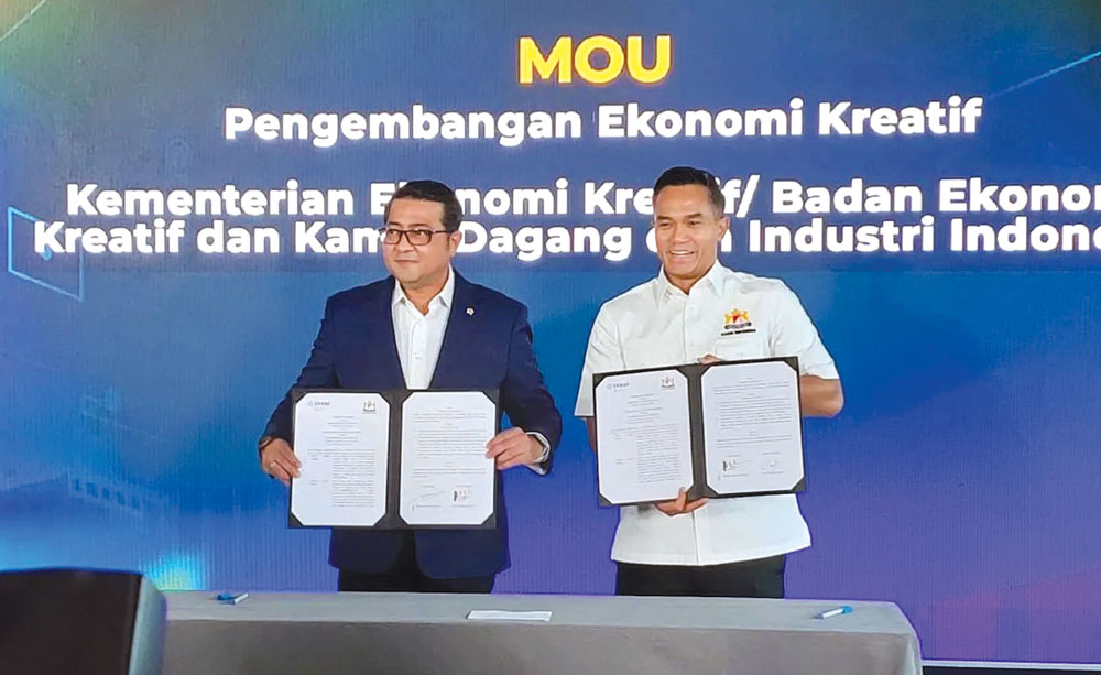 KEMENTERIAN Ekonomi Kreatif menjalin kerja sama dengan Kamar Dagang dan Industri (Kadin) untuk memperkuat pengembangan ekosistem ekonomi kreatif. Penandatanganan nota kesepahaman (MoU) itu diharapkan menjadi tenaga pendorong industri kreatif memasuki agenda besar 2026.