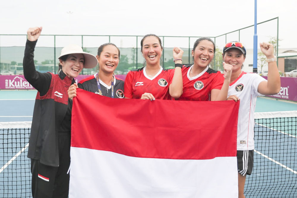 JAKARTA (BP) – Pengurus Pusat Persatuan Tenis Indonesia (PP Pelti) menargetkan cabor tenis kembali juara umum di SEA Games Thailand 2025. Jika dalam SEA Games sebelumnya meraih empat medali emas, Pelti menaikkan target menjadi lima medali emas. Setiap peraihnya berhak atas bonus Rp 100 juta, di luar bonus dari pemerintah.