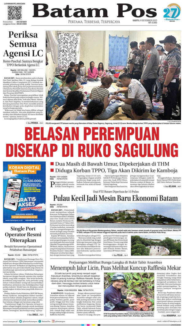 Silakan berlangganan untuk bisa membaca keseluruhan berita di Harian Batam Pos. ﹢ Berlangganan Baca Juga 10 Maret 2026 10 Maret 2026 WhatsAppTelegram 6 Desember 2025 6 Desember 2025 Buka konten iniDengan mendaftarkan diri Anda di Harian Batam Pos, Anda akan mendapatkan akses penuh ke seluruh konten.SubscribeKami tidak akan mengirimkan email yang tidak berkaitan dengan akun Anda.Saya setuju untuk memperoses data saya sesuai dengan Aturan Layanan yang disediakan.