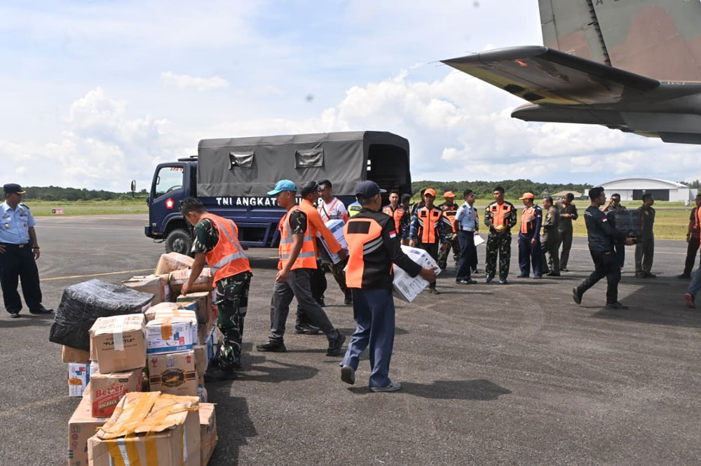 Bantuan tersebut diberangkatkan menggunakan pesawat CN-295 tail number A-2903 dari Lanud Raden Sadjad, Jumat (5/12), setelah seluruh barang dihimpun dan dikemas oleh petugas di lapangan.