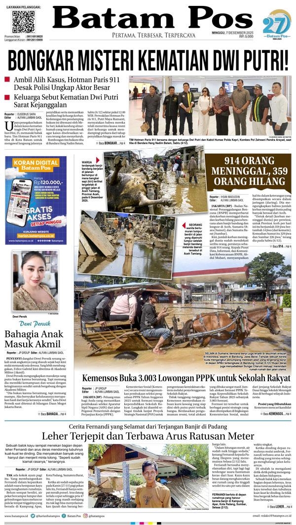Silakan berlangganan untuk bisa membaca keseluruhan berita di Harian Batam Pos. ï¹¢ Berlangganan Baca Juga 18 Januari 2026 18 Januari 2026 WhatsAppTelegram 7 Desember 2025 7 Desember 2025