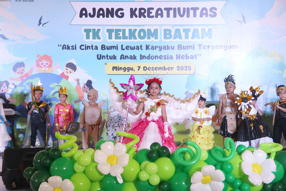 BATAM KOTA (BP) – Ajang Kreativitas TK Telkom Batam berlangsung meriah di Atrium Clematis, Minggu (7/12). Ratusan pengunjung terpukau menyaksikan anak-anak tampil percaya diri mengenakan kostum daur ulang dalam agenda bertema “Aksi Cinta Bumi Lewat Karyaku: Bumi Tersenyum untuk Anak Indonesia Hebat.”